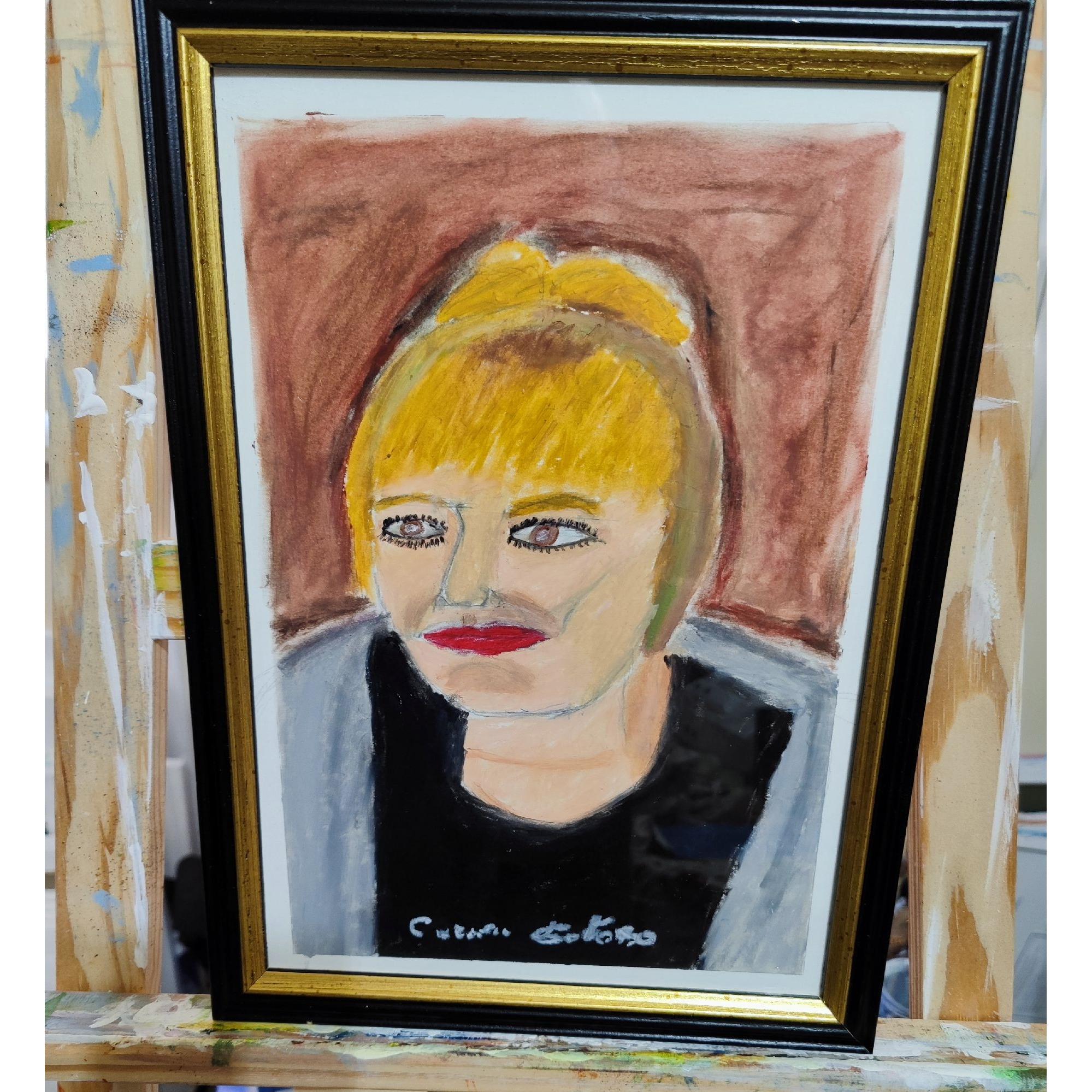 Qui ho voluto esercitarmi con il mio autoritratto, per cambiare il tipo di pittura e disegno in previsione di altri quadri, e lo fatto con i pastelli ad olio morbidi della Momart, che non sono da meno dalla sennelier,.