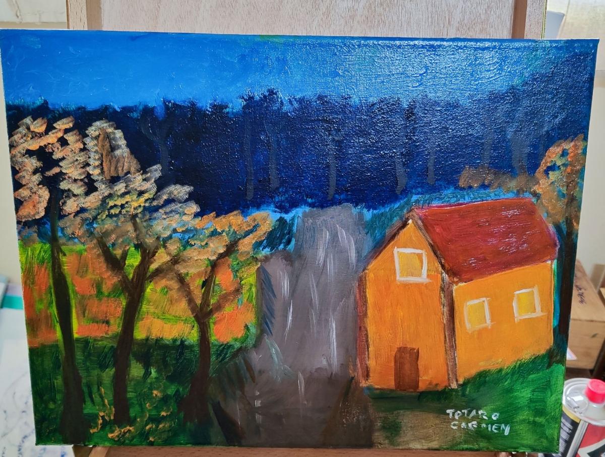Il quadro e astratto nello stile naif, il dipinto non è pensato ma sono andata a braccio, cio che usciva