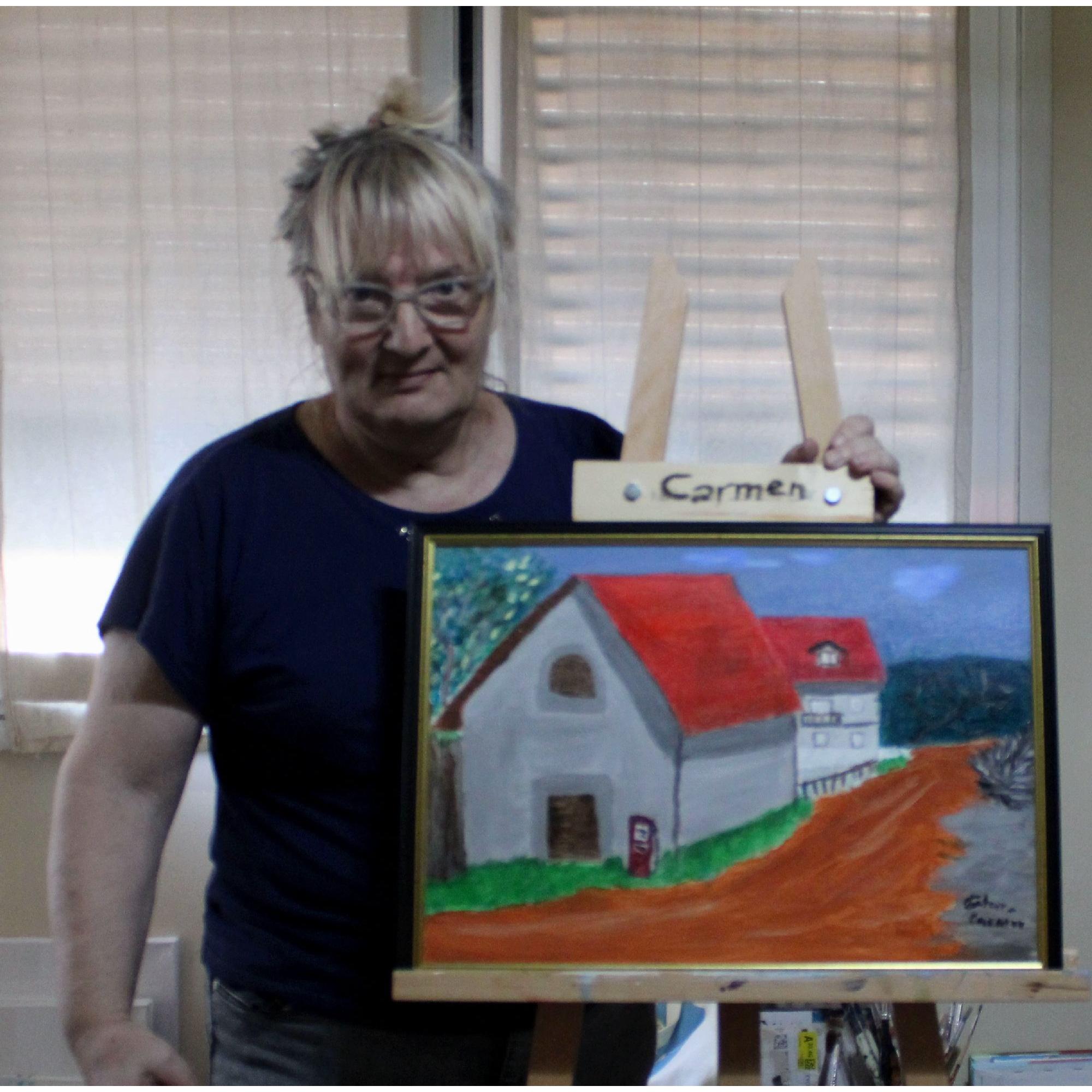 Il dipinto è in acrilico, raffigura un vecchio borgo rurale, che oggi non se ne trovano più, e un mio veccio ricordo di gioventù, quando si andava in giro con le moto, si trovavano questi borghi, anche per fare benzina, e poi tornare a divertisi, non voglio essere nostalgica, ma rievocare un tempo e una storia, il dipinto e un pannello telato con una cornice, fa parte di una serie di borghi che riprendono un passato ,